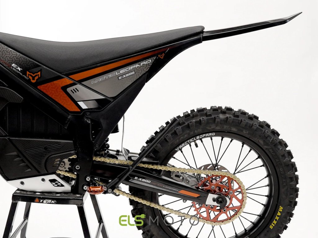 Arctic Leopard E-X 800 představuje vyváženou a technicky precizní alternativu k vrcholnému modelu E-XE880. Konstrukčně vychází ze stejné platformy Arctic Leopard E-X 800 je čistokrevná off-road elektromotorka spadající do kategorie mid size. Konstrukčně vychází z trialové platformy s delšími zdvihy odpružení a enduro ergonomií, díky čemuž nabízí mimořádnou obratnost, nízké těžiště a přesné ovládání i v extrémně technickém terénu.