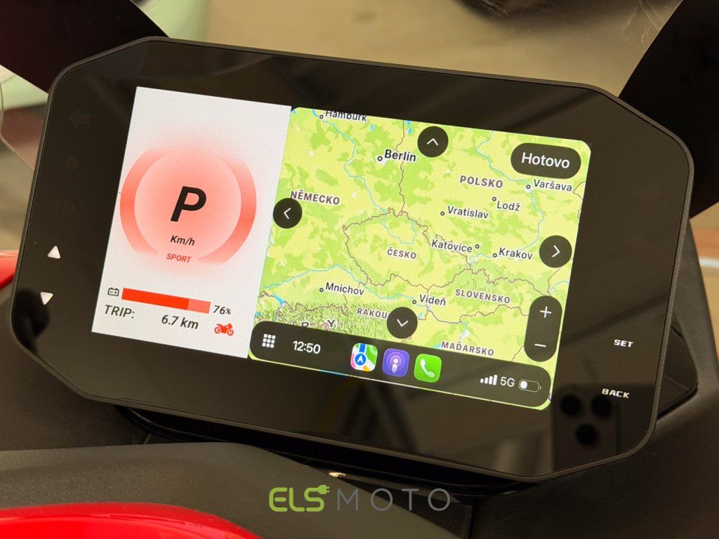 Druhou významnou novinkou je zcela nový, větší a modernější displej s podporou Apple CarPlay a Android Auto. Uživatel tak může pohodlně propojit bezdrátově svůj mobilní telefon a využívat navigaci a další kompatibilní funkce přímo na displeji skútru.