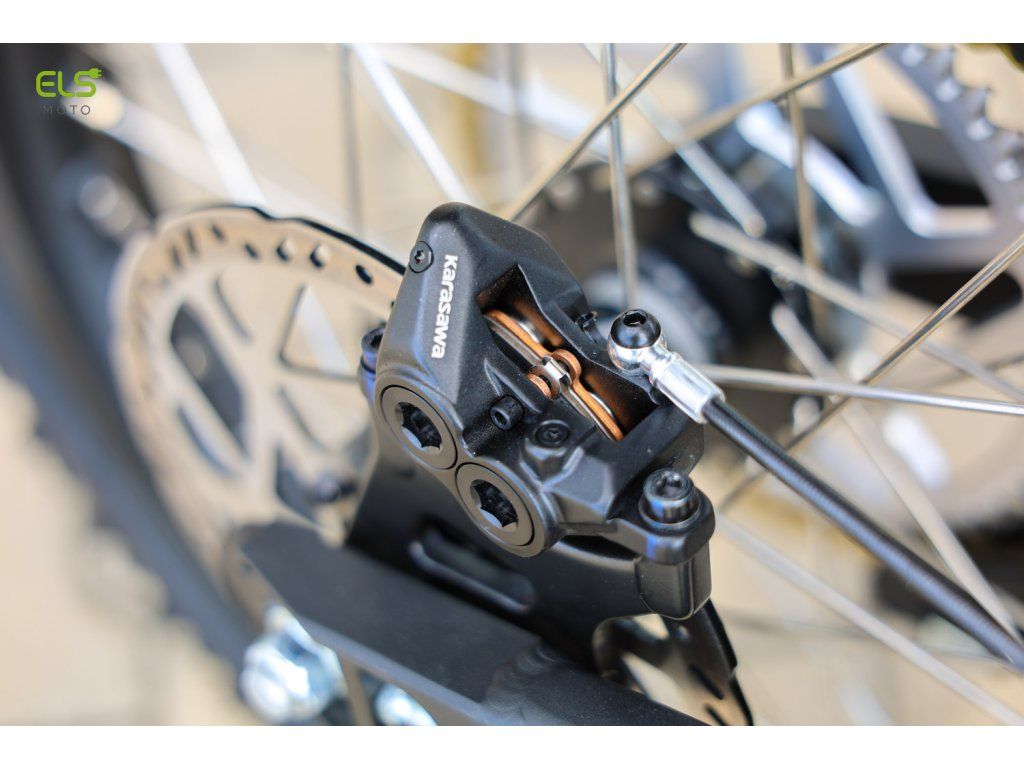 Hydraulické čtyřpístkové brzdy s kotouči 220 mm doplňuje rekuperace. Výsledkem je přesnější brzdění, jistější nástup a vyšší kontrola při dynamické jízdě.