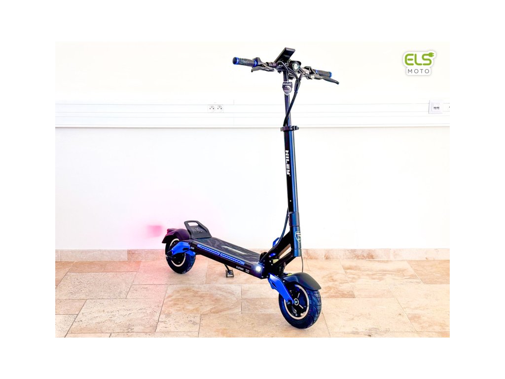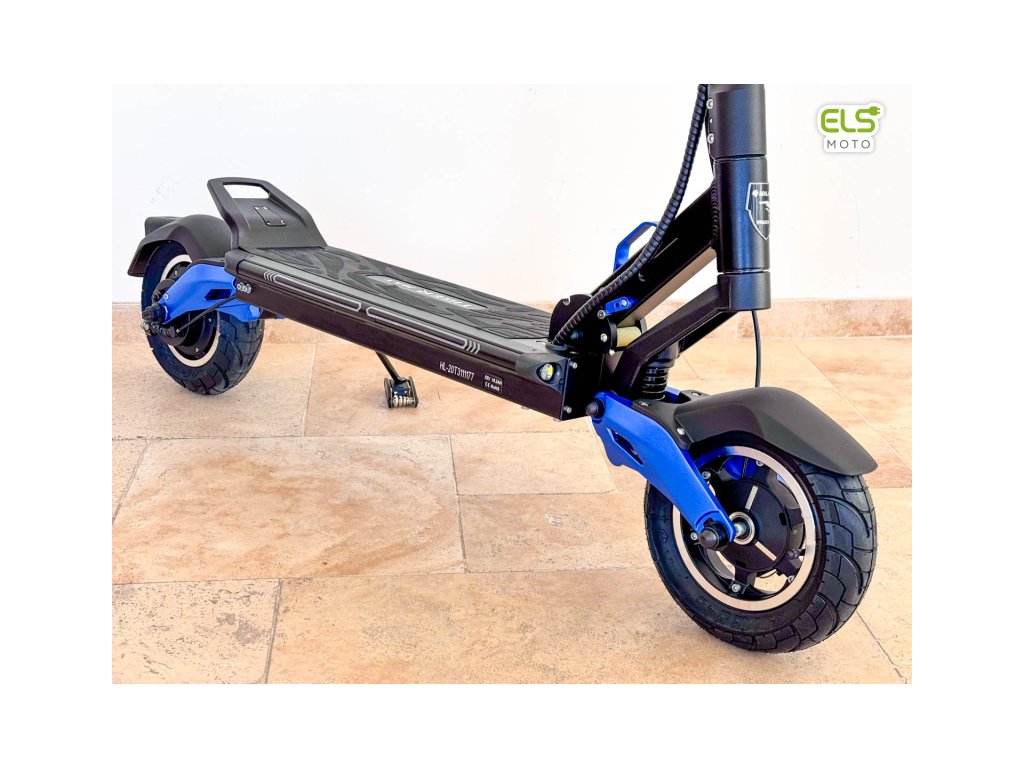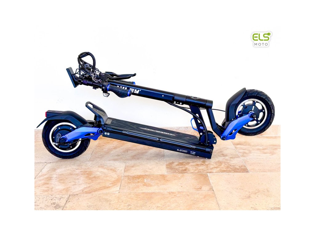 Nová skládací elektrokoloběžka Hiley T-MAX GT, motor výkon 800W (max 1300W), baterie 52V/18,2 Ah (946Wh), dojezd až 70 km. Maximální rychlost 50 km/hod., "C" odpružení v předu i vzadu, LED světlo, NFC.