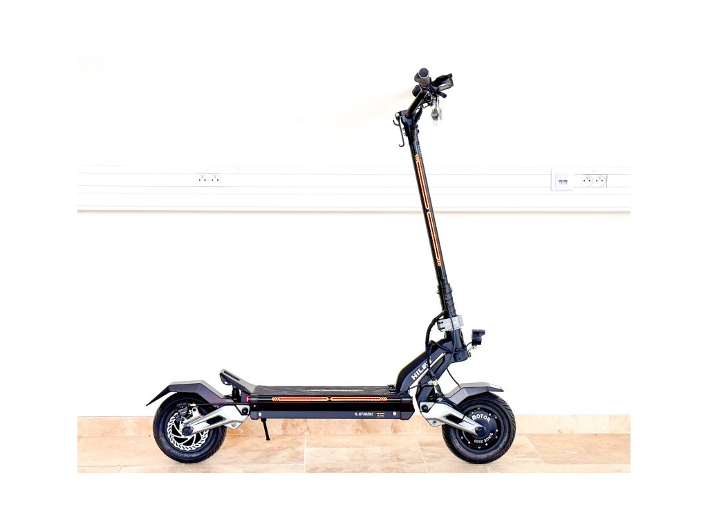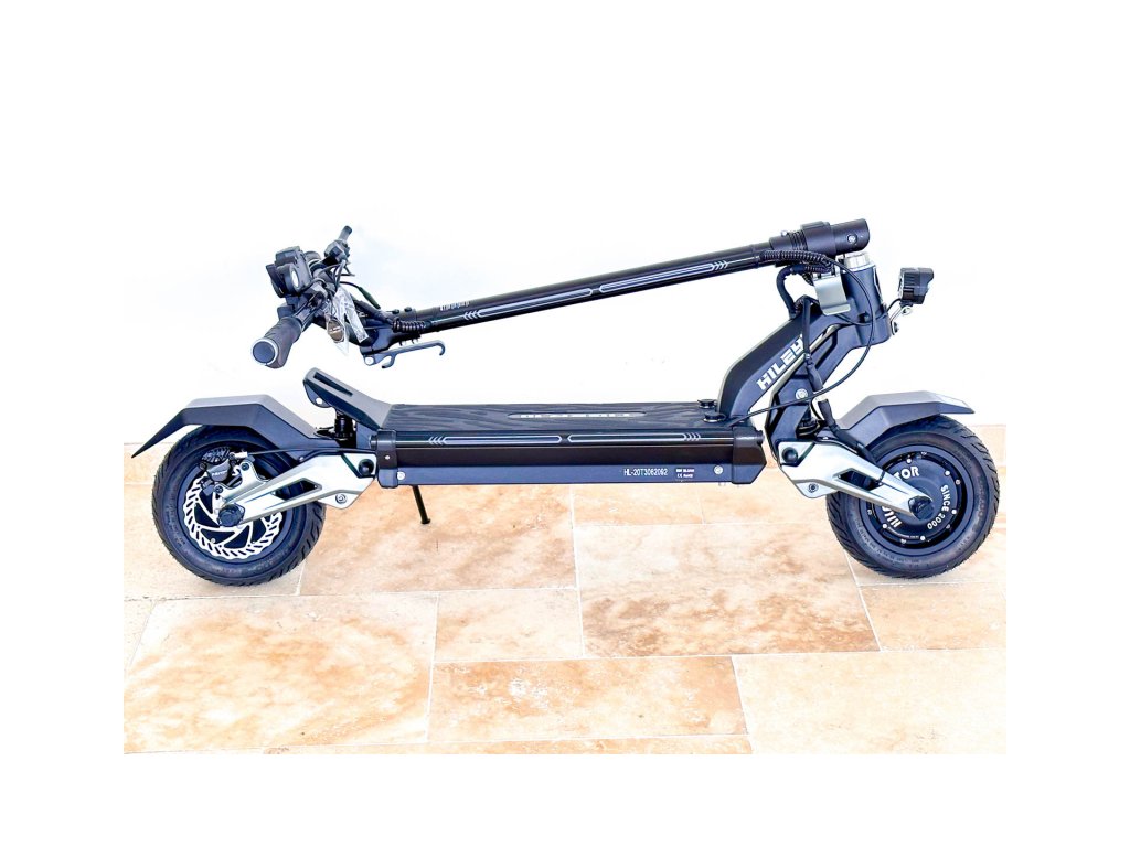 Nová prémiová skládací elektrokoloběžka Hiley T10 V3, duální motor 2x1000W (max 2800W), baterie 52V/20,8 Ah, dojezd až 80 km. Maximální rychlost 65 km/hod., "C" hydraulické odpružení v předu i vzadu, LED světlo, NFC, brzdy NUTT.
